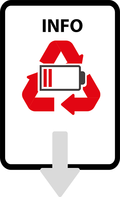 En del af vores produkter indeholder batterier. Derfor skal vi informere dig om, at brugte batterier ikke må smides ud med husholdningsaffaldet.